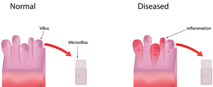 Eine Erhöhung der CRP-Konzentration kann Hinweis auf eine entzündliche Erkrankung sein. Zudem können ein Mangel an Vitaminen und Spurenelementen, als Ausdruck der eingeschränkten Darmfunktion, oder eine Anämie (Blutarmut) mit einer Blutuntersuchung aufgedeckt werden.